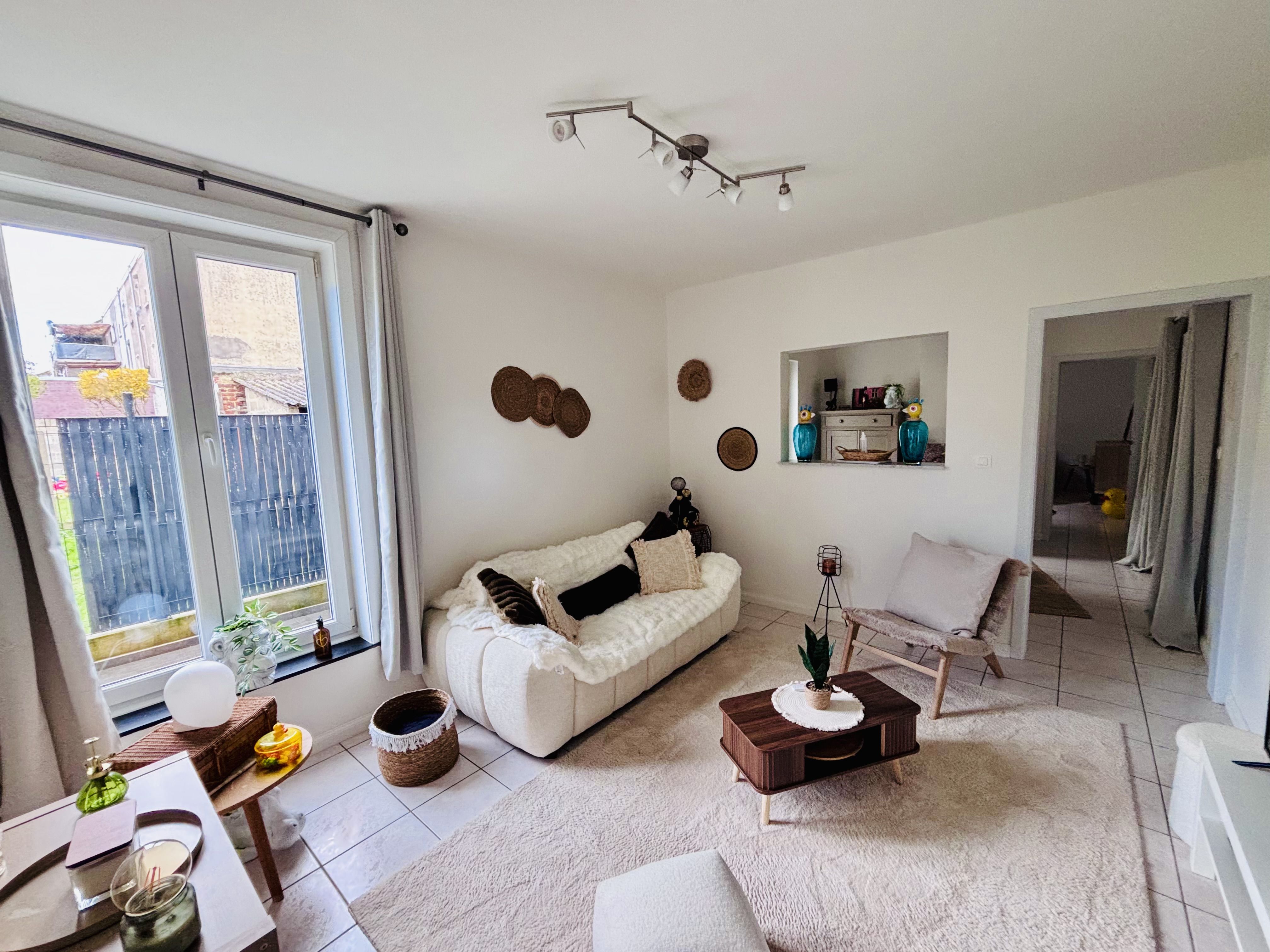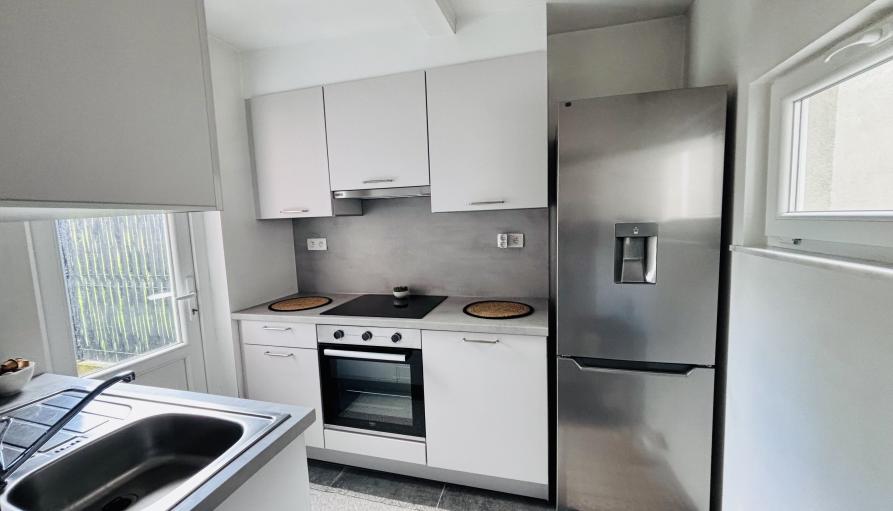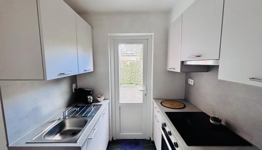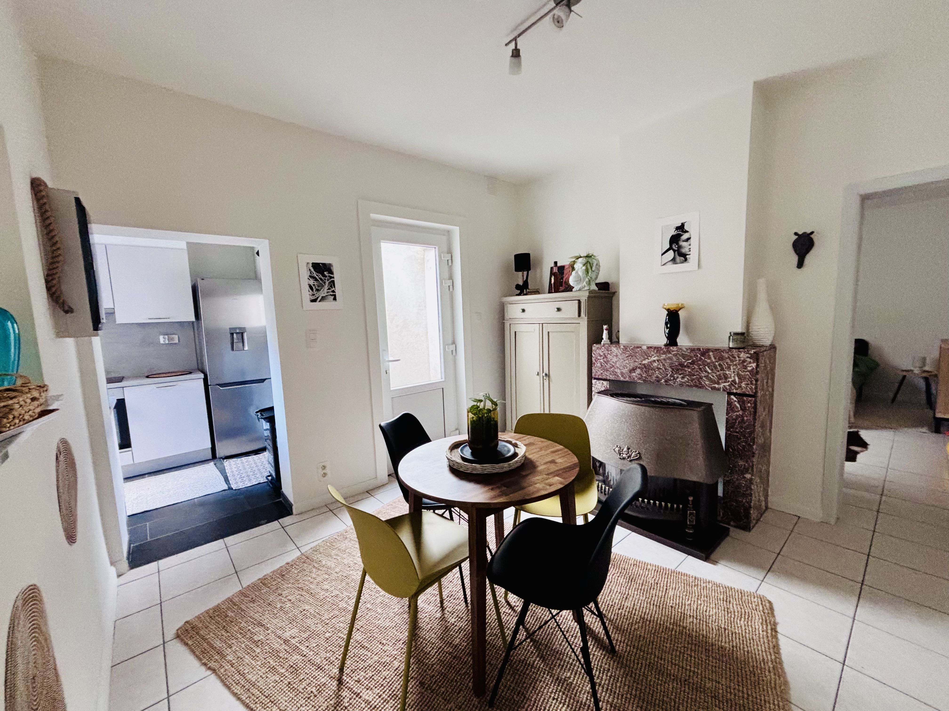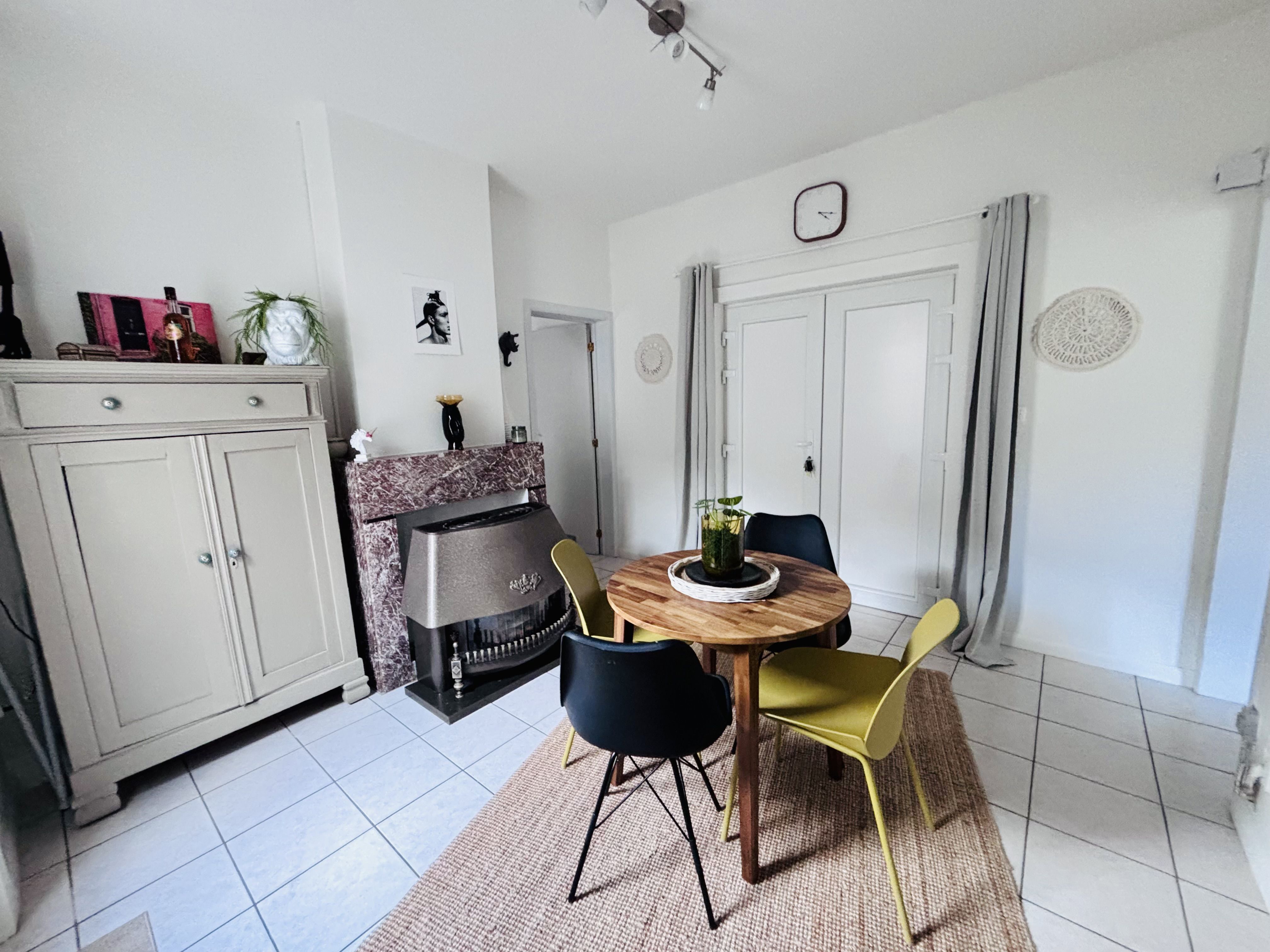 Appartement situé au rez-de-chaussée , il se compose comme suit : Hall d’entrée commun, salon /salle manger , cuisine équipée, salle de bain avec douche et WC , une chambre et 2 cours