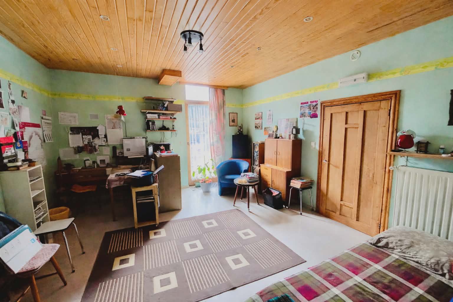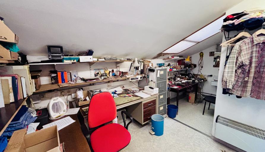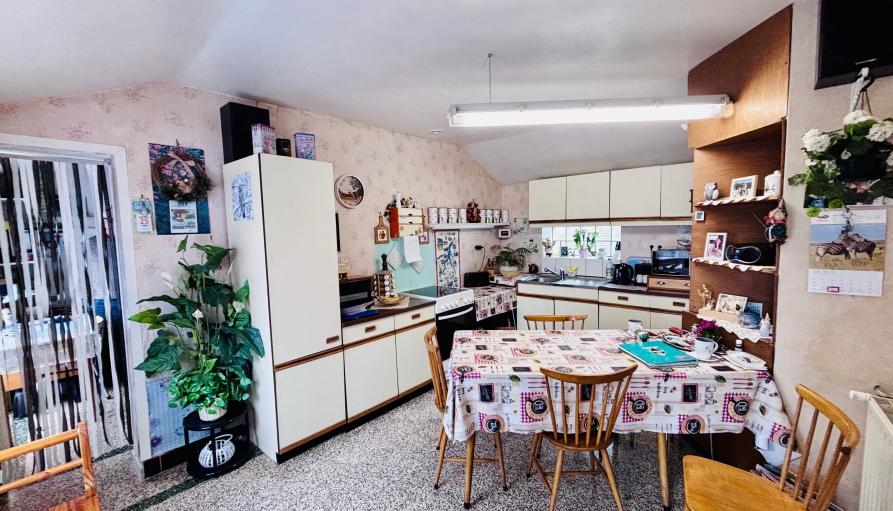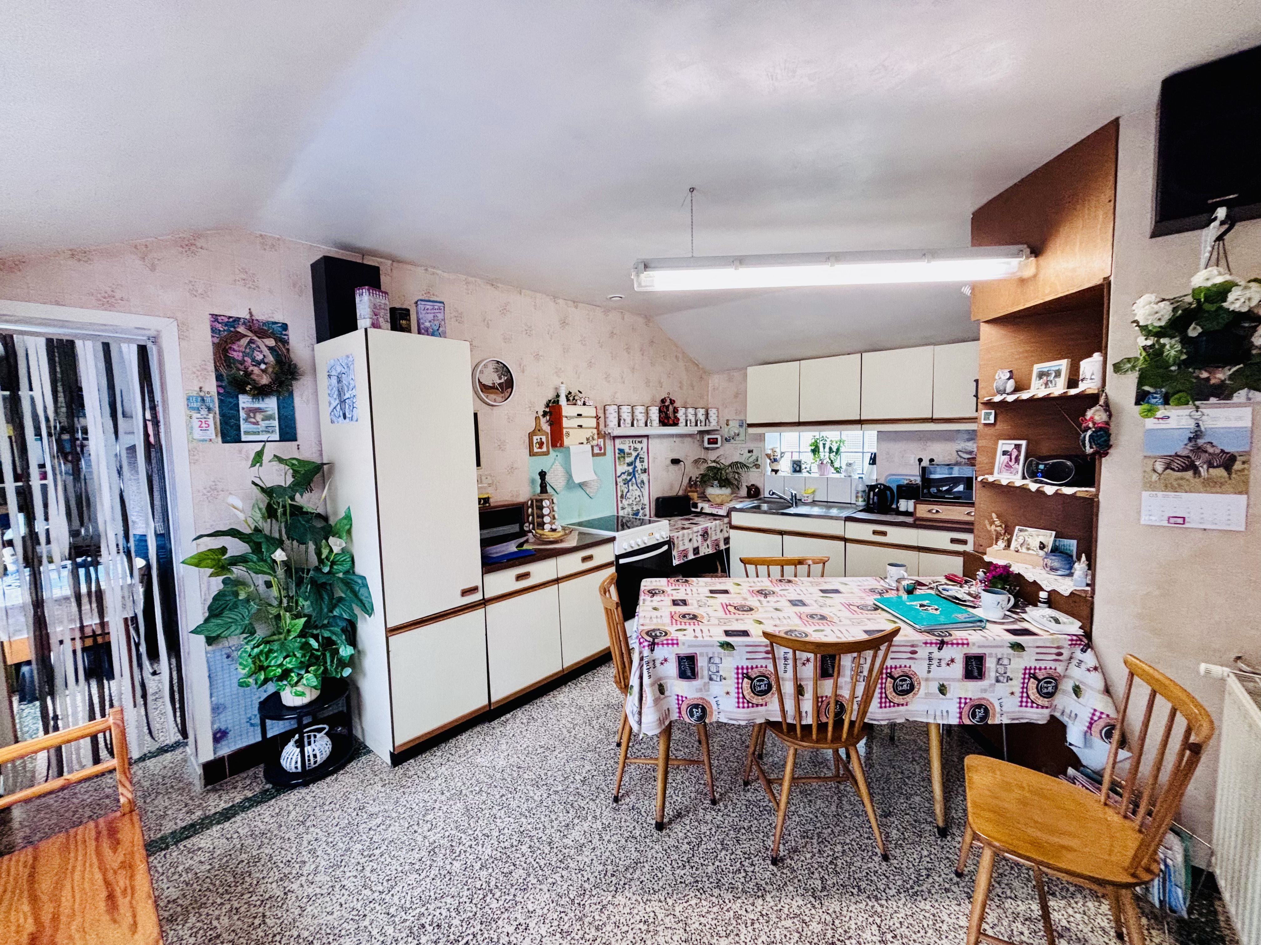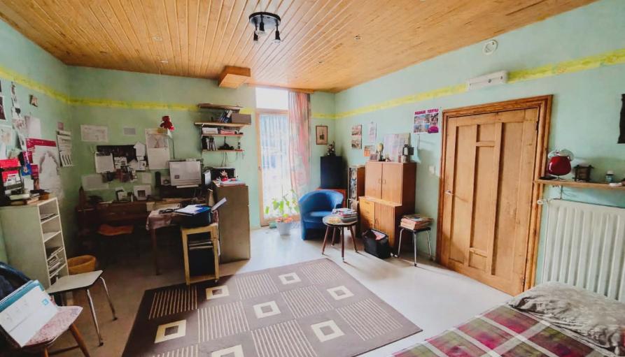 La seconde partie, d’un espace de vie, d’une autre pièce pouvant être aménagée en cuisine (tous les raccordements sont effectués) et d’une salle de douche avec wc, possibilité de transformer ces deux pièces en deux chambres supplémentaires.