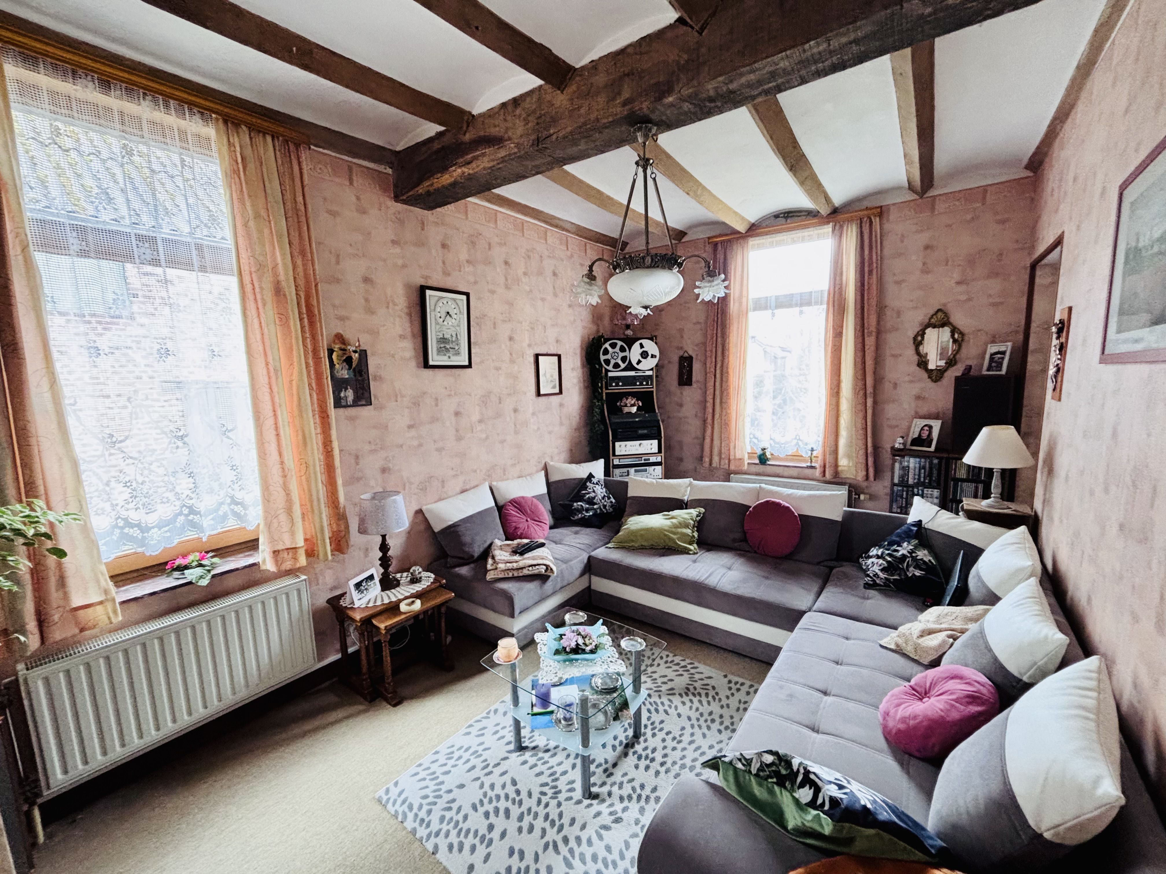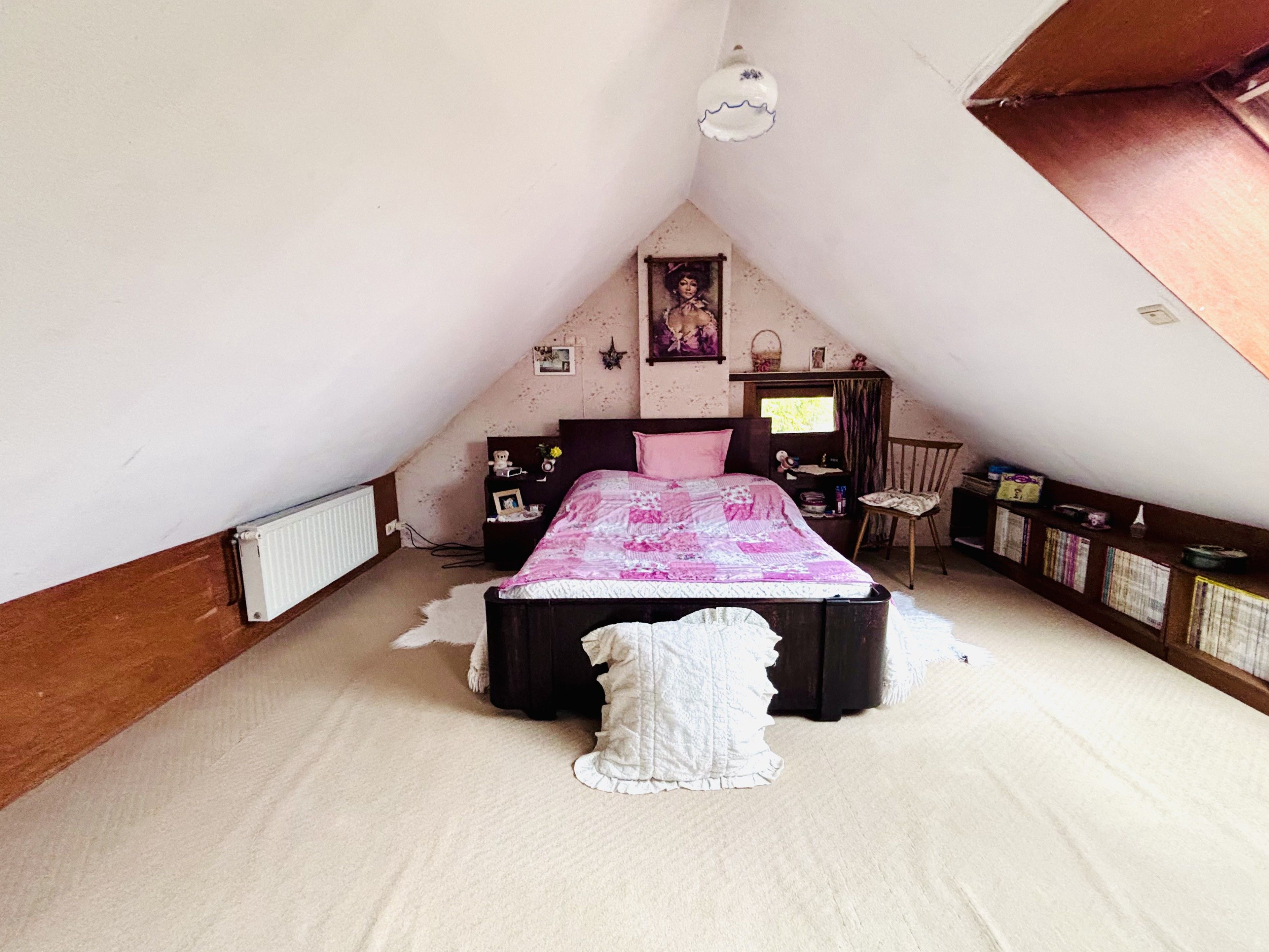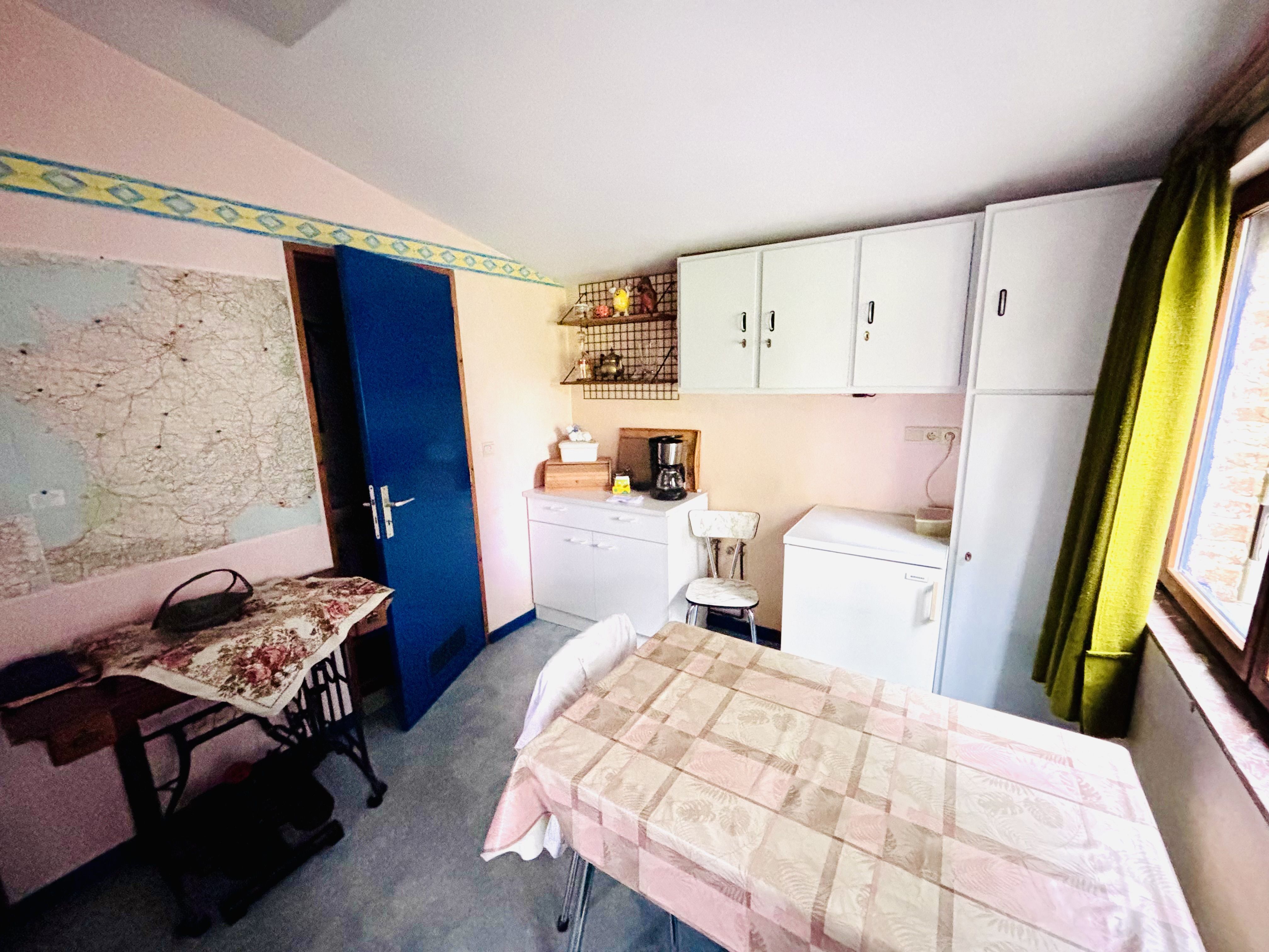 La seconde partie, d’un espace de vie, d’une autre pièce pouvant être aménagée en cuisine (tous les raccordements sont effectués) et d’une salle de douche avec wc, possibilité de transformer ces deux pièces en deux chambres supplémentaires.