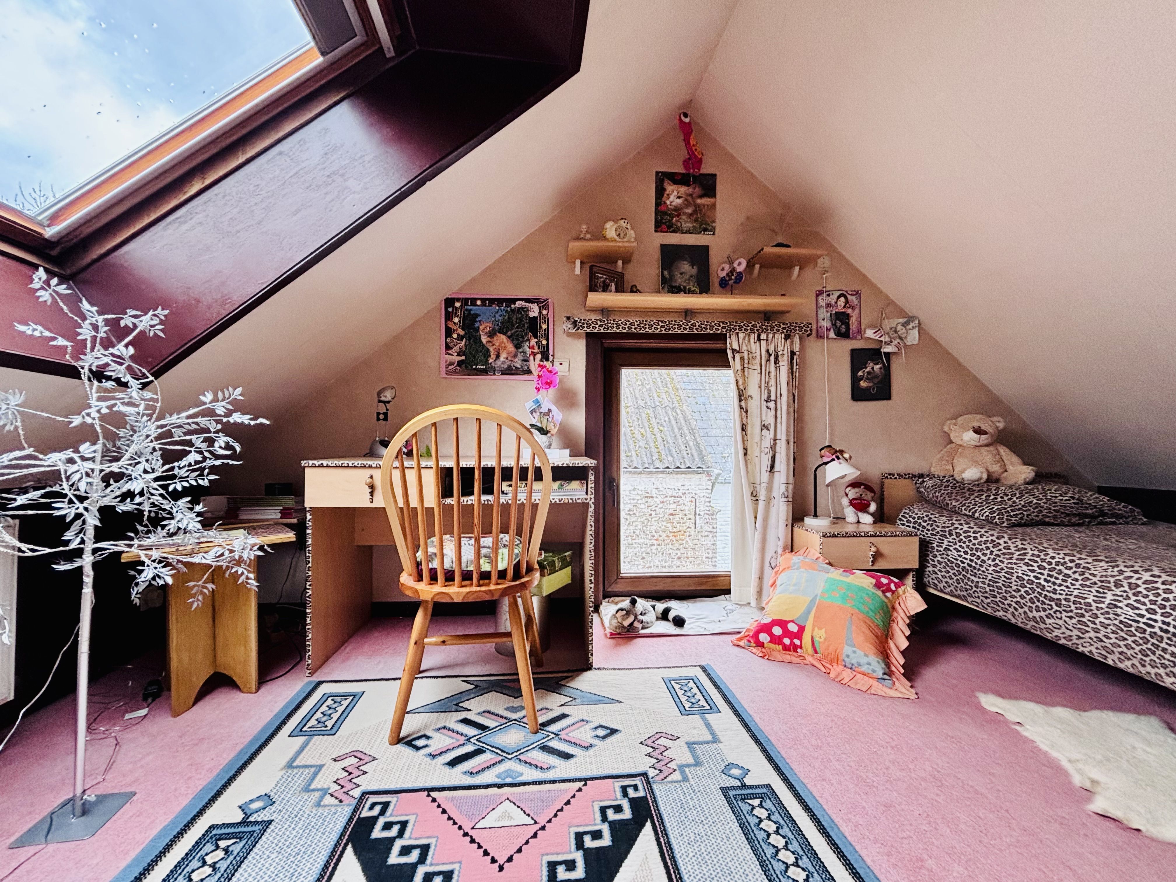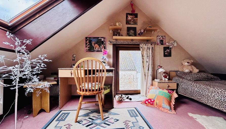 A l’étage, 2 chambres et une salle de bain avec wc.