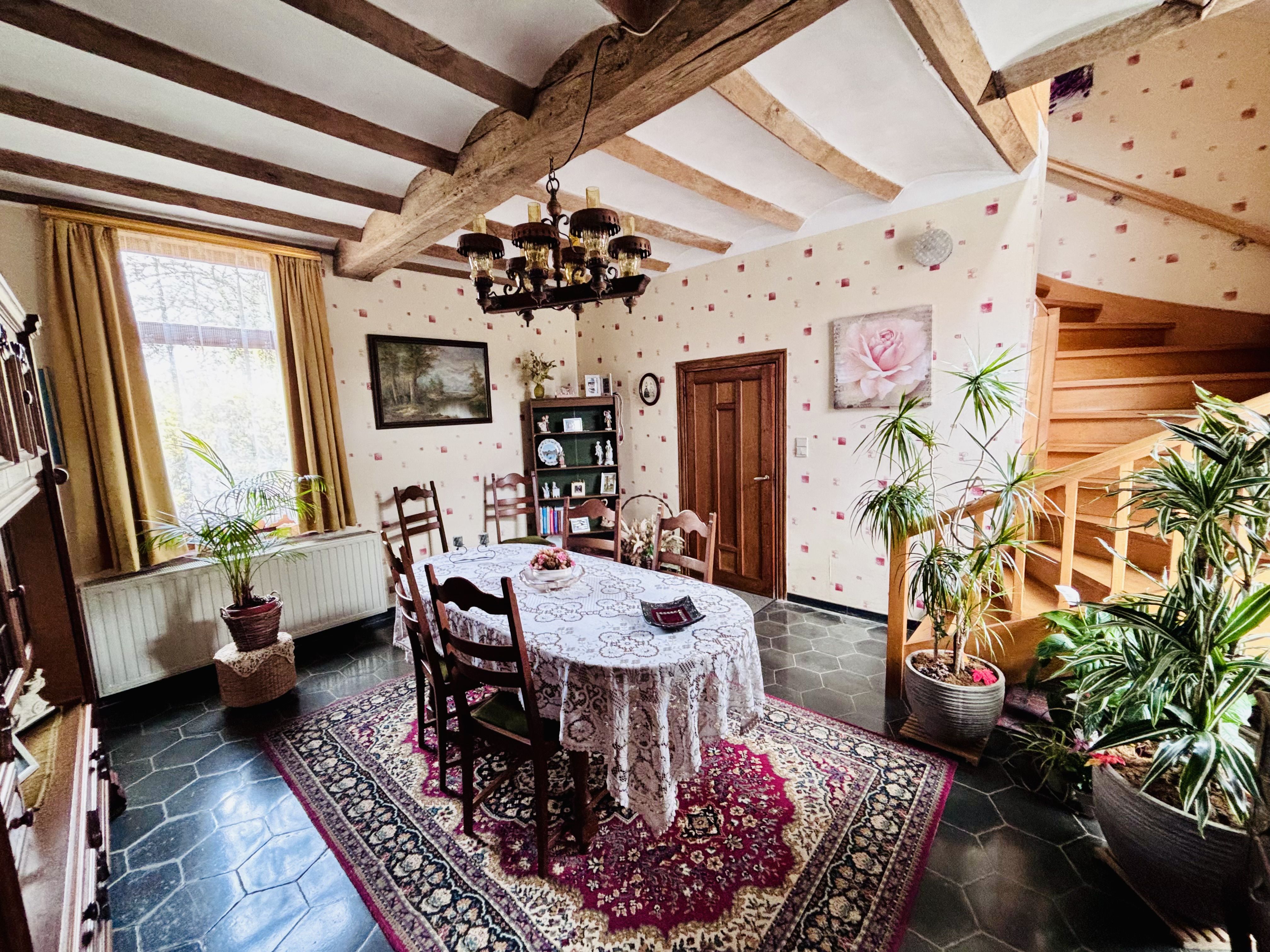 D'un point vue technique : chauffage central avec chaudière au mazout cuve de 2.000L non enterrée, châssis double vitrage, toiture isolée et citerne à eau de pluie.