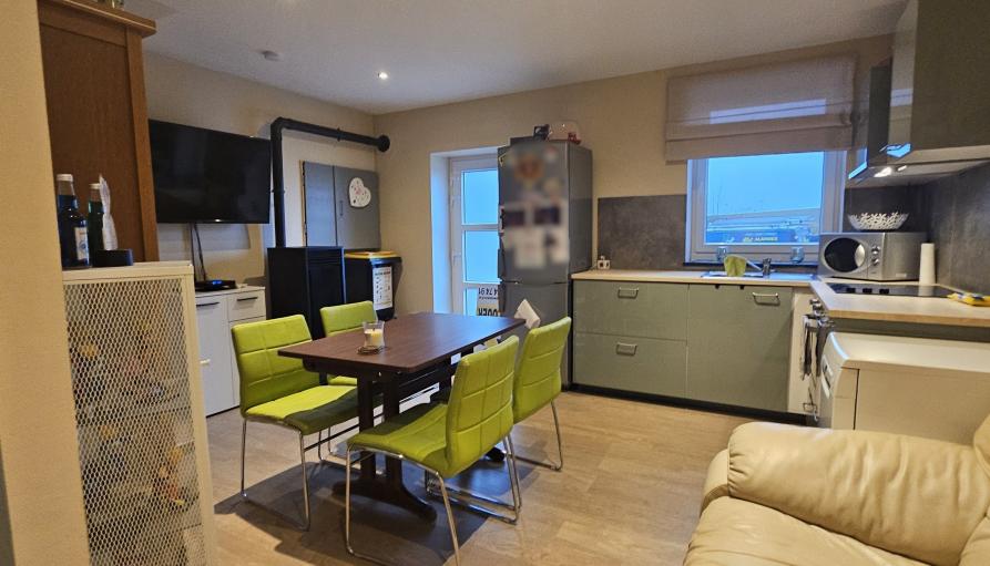 Avec environ 55m², cette maison se compose au rez de chaussée d’une pièce à vivre avec cuisine équipée, petit salon et débarras.